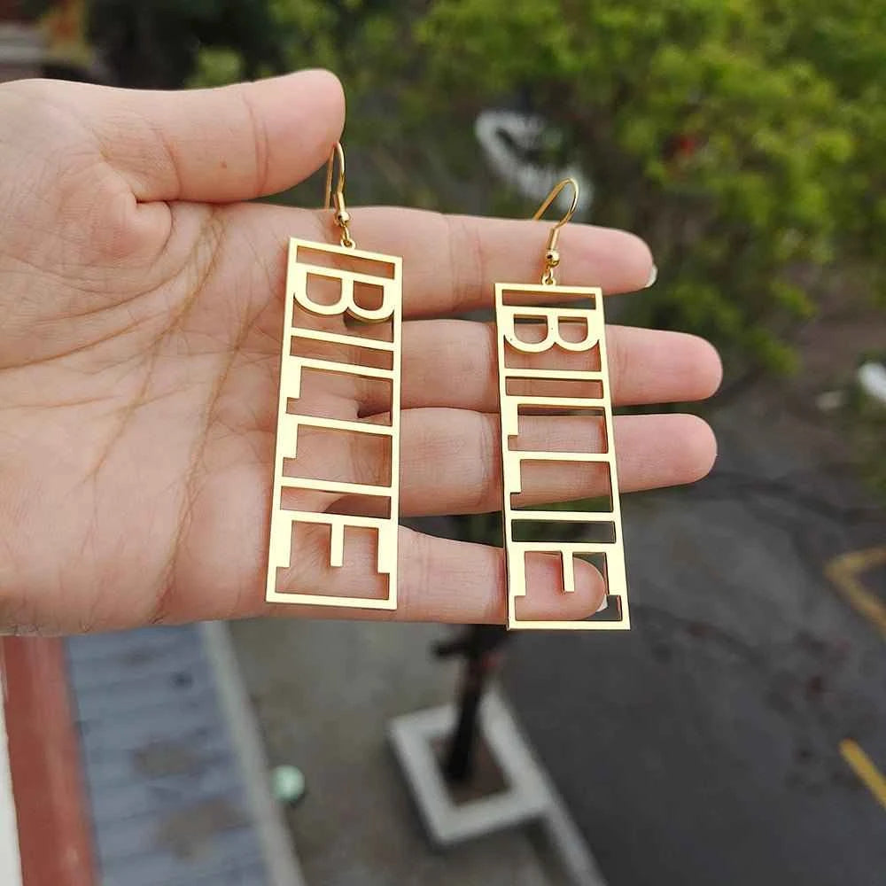 Custom Big Name Earrings: Make a Bold Statement with Stylish Rectangular Designs