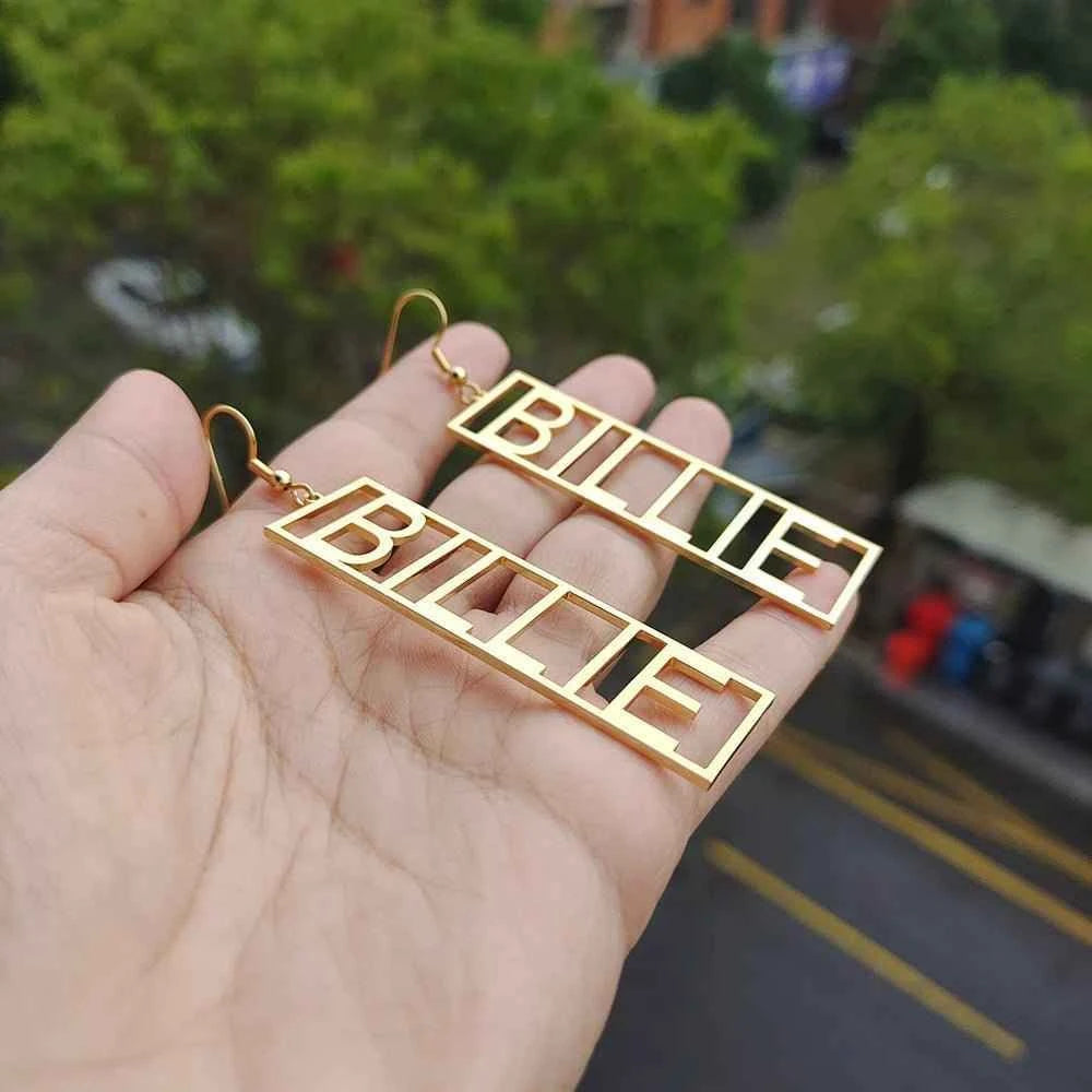 Introducing our custom big name earrings, a striking accessory designed for those who dare to stand out. These stylish rectangular earrings are not just jewelry; they are a statement about your personality, your style, and your confidence.