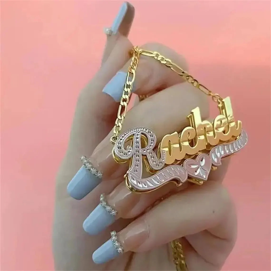 Custom Double Name Necklace | Personalized Gold Nameplate